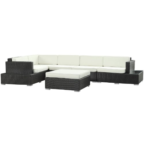 LexMod Secret Harbour 6 Piece Outdoor Rattan Espresso with White Cushions